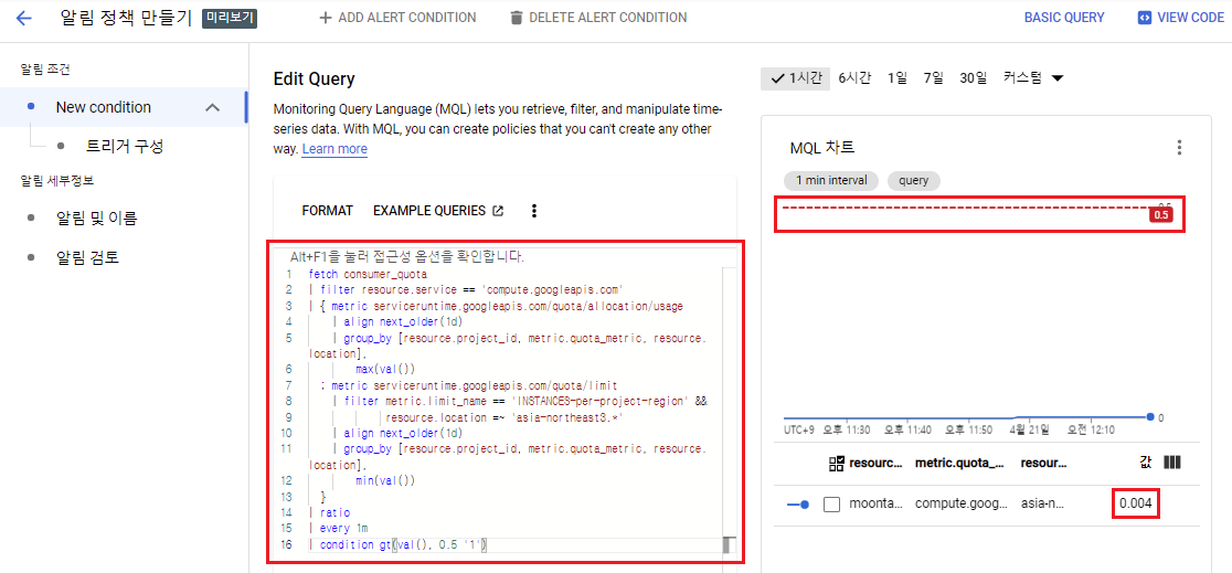 - 코드 업데이트 > "RUN QUERY" > 차트를 확인