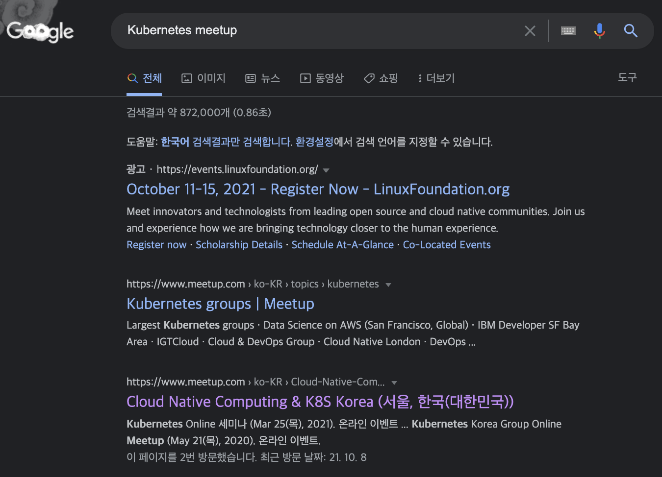 쿠버네티스 밋업은 여러 경로를 통해서 찾아서 들을 수 있습니다, 저는 여러 행사게 참석하다가 Meetup 정보를 얻어서 들을 수 있었습니다